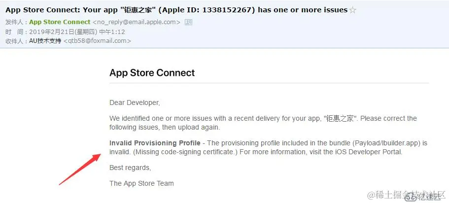 出现这种情况说明你上传的这个ipa包有问题,苹果会发送具体原因到邮箱(开发者账号就是邮箱地址,)