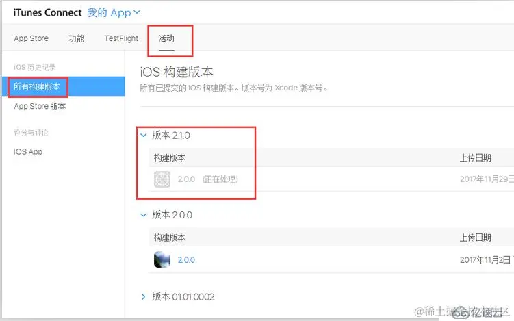 AU上传ipa出现下图红框提示说明成功 上传,但有时App Store后台没有出现构建版本,请查看下面详细说明!