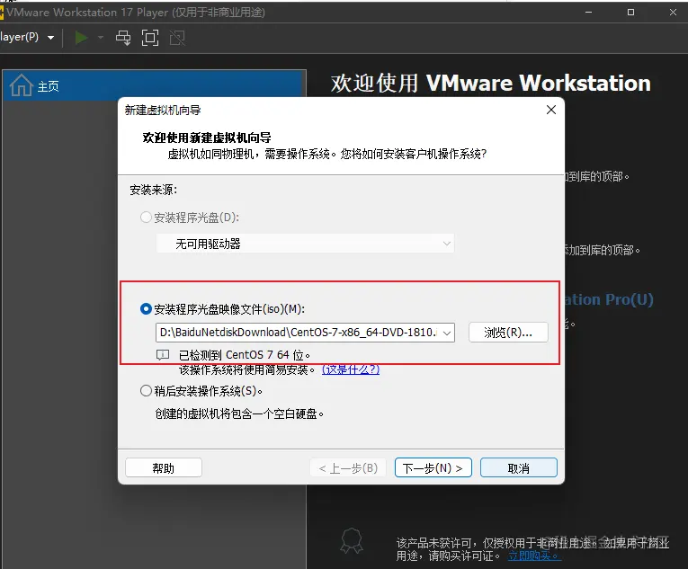 我们使用vmware workstation player ,这个是免费版本的,用于非商业用途的学习是完全ok的。