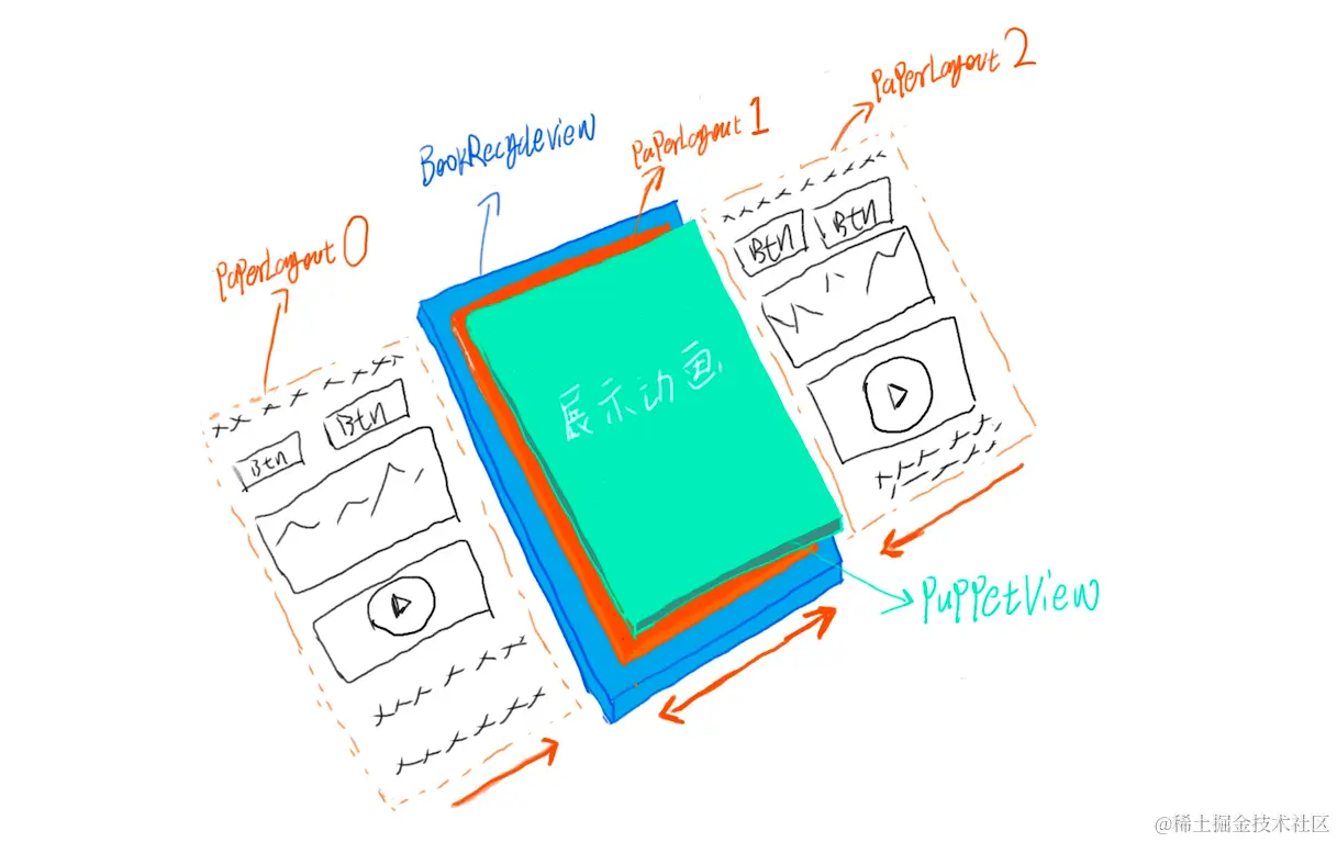 - BookView 摆放 BookRecyclerView 与PuppetView