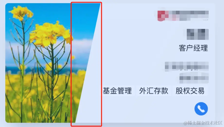 如下图所示,要将一个图片裁剪成直角梯形,刚开始的思路是用三角形遮盖,发现要画一个瘦高的直角三角形,远没有直接将图片裁剪成梯形来得容易。所以最后采用css的clip-path属性,实现了这个效果。