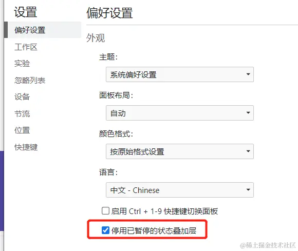在偏好设置里,勾选停用已暂停的状态叠加层