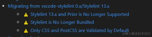 还有一点要注意,如果vscode加载了多个项目,要将每个项目中的postcss-less包都要进行降级, 否则这个错误提示会反复发作。另外还有个大坑,如果有的项目下的.vscode/settings.json配置了stylelint功能,而这个项目未安装与stylelint相关的npm包,也会报上面的错误。要在setting.json文件中移除stylelint的相关设置才行。