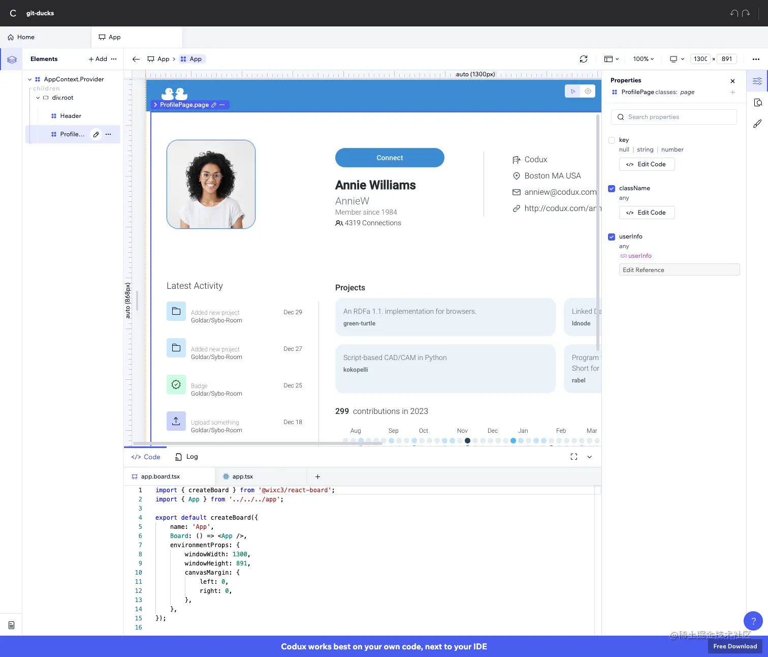 如果可以在已有项目里直接开一个目录维护通用组件并可以清晰看到每个组件的渲染结果就可以有限缓解上述问题,codux 便是解决此类问题的一个实现完善的可视化 React IDE。其最大优点是可以和现有系统进行集成,不需要对原有系统代码做任何改造,并且对 TypeScript、Git、Sass 等工具有开箱即用的支持。codux 和 Storybook 有部分类似的地方,不过 codux 更专注于本地 DX。值得一提的是,codux 背后的公司是大名鼎鼎的无代码建站平台 Wix。