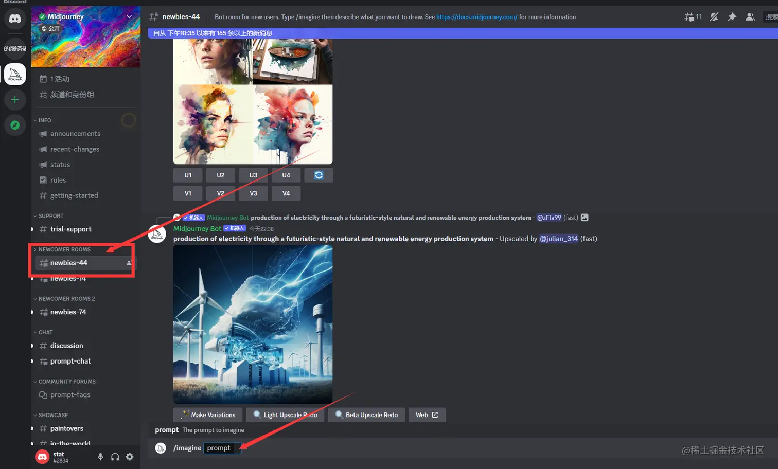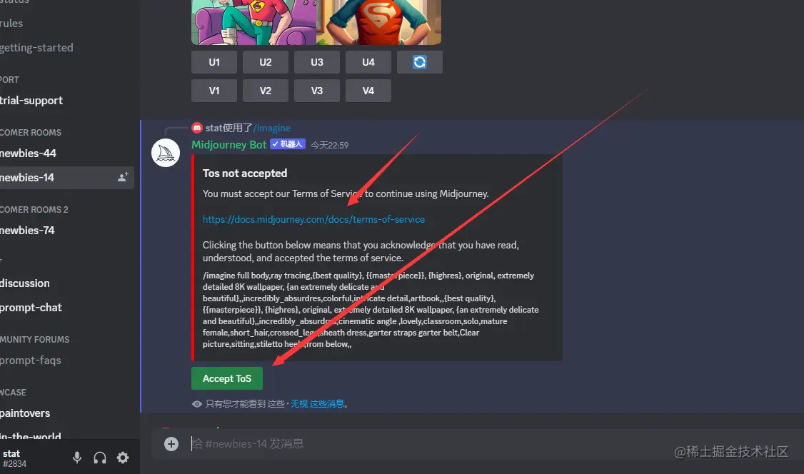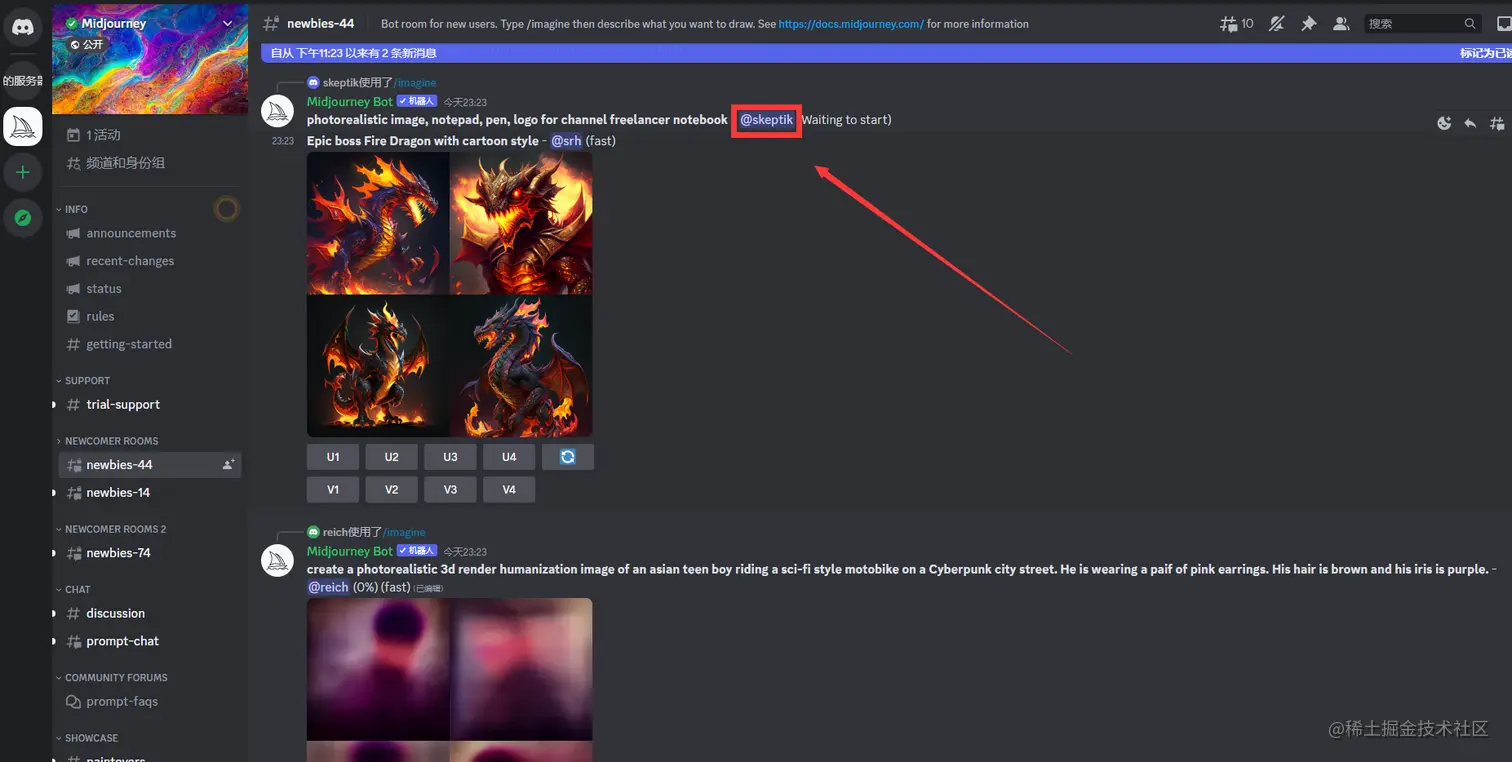 会有很多人在同一个频道生成图片,所以你要看清楚你的名字,然后就能知道哪条消息是你的了。