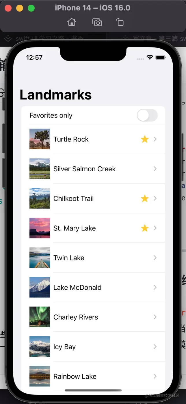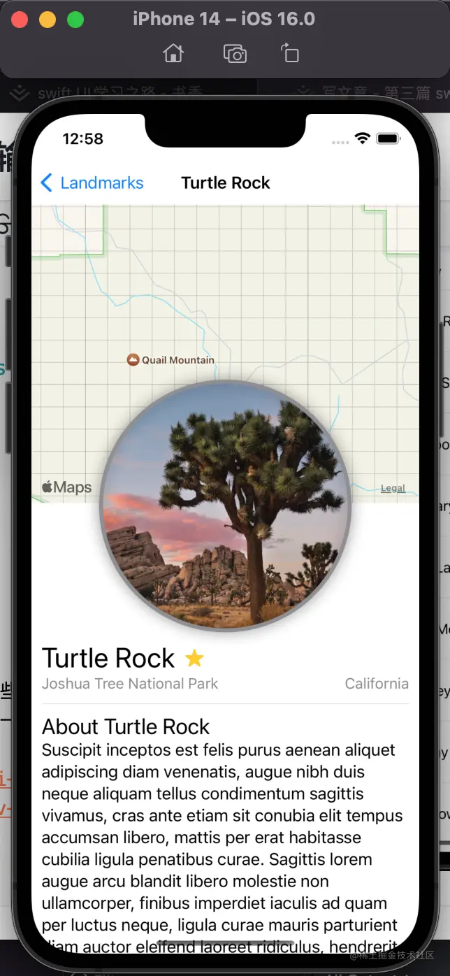 第六步 切换回Landmark.swift并打开实时预览,以验证一切是否正常工作。