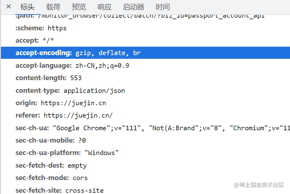 首先想要使用gzip,需要浏览器支持。目前大多数的浏览器都支持gzip,在浏览器向服务器请求资源时,在http请求头Accept-Encoding属性表示浏览器支持的格式,这样服务器在接收到请求后,就可以知道浏览器是否支持gzip压缩了。