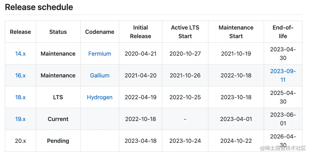 - Node.js 各版本停止维护时间