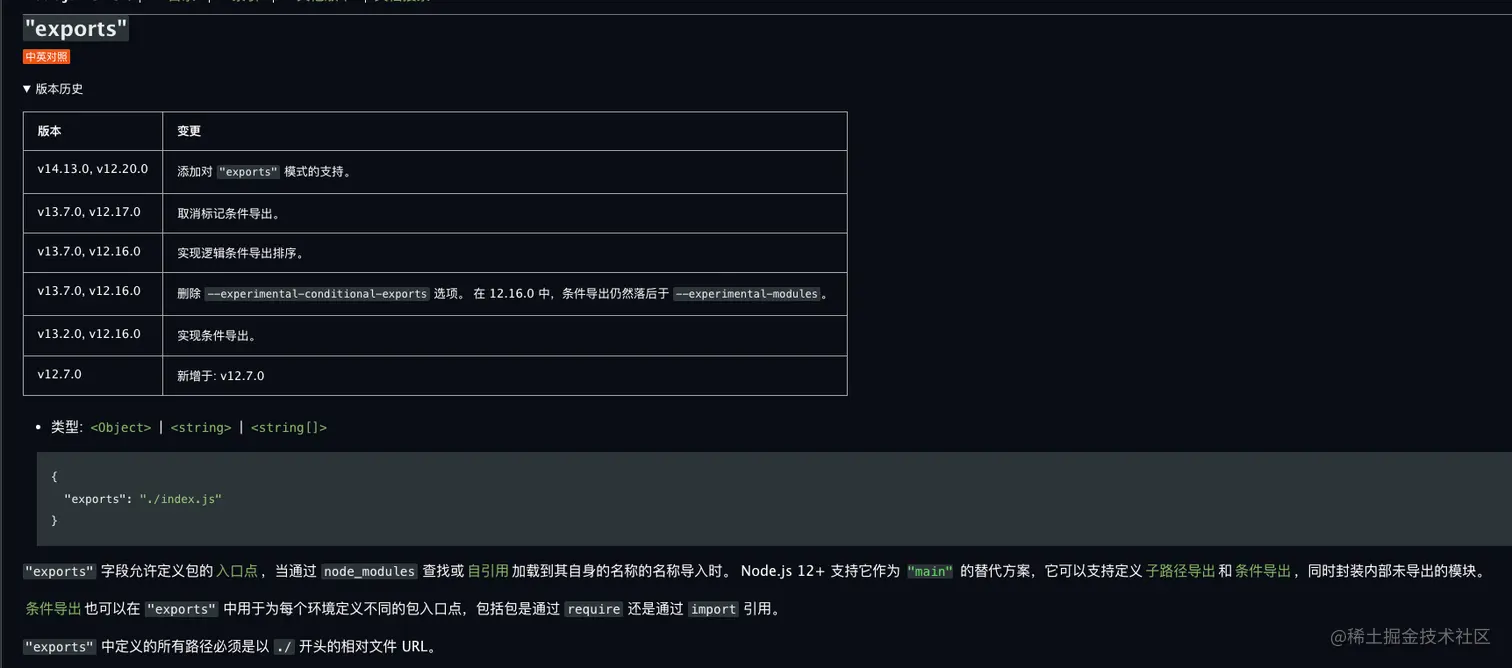 由于exports字段只有支持 ES6 的 Node.js 才支持,所以可以用来兼容旧版本的 Node.js