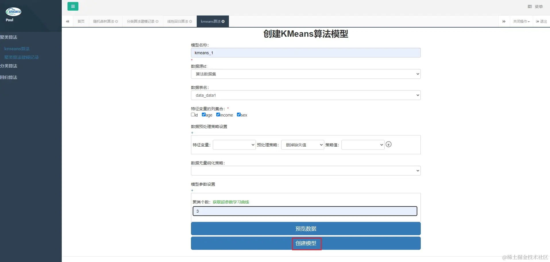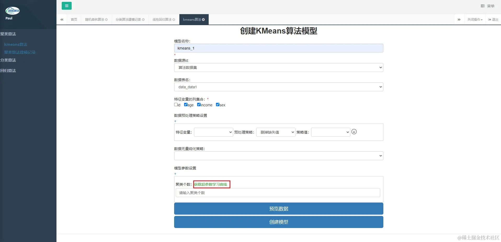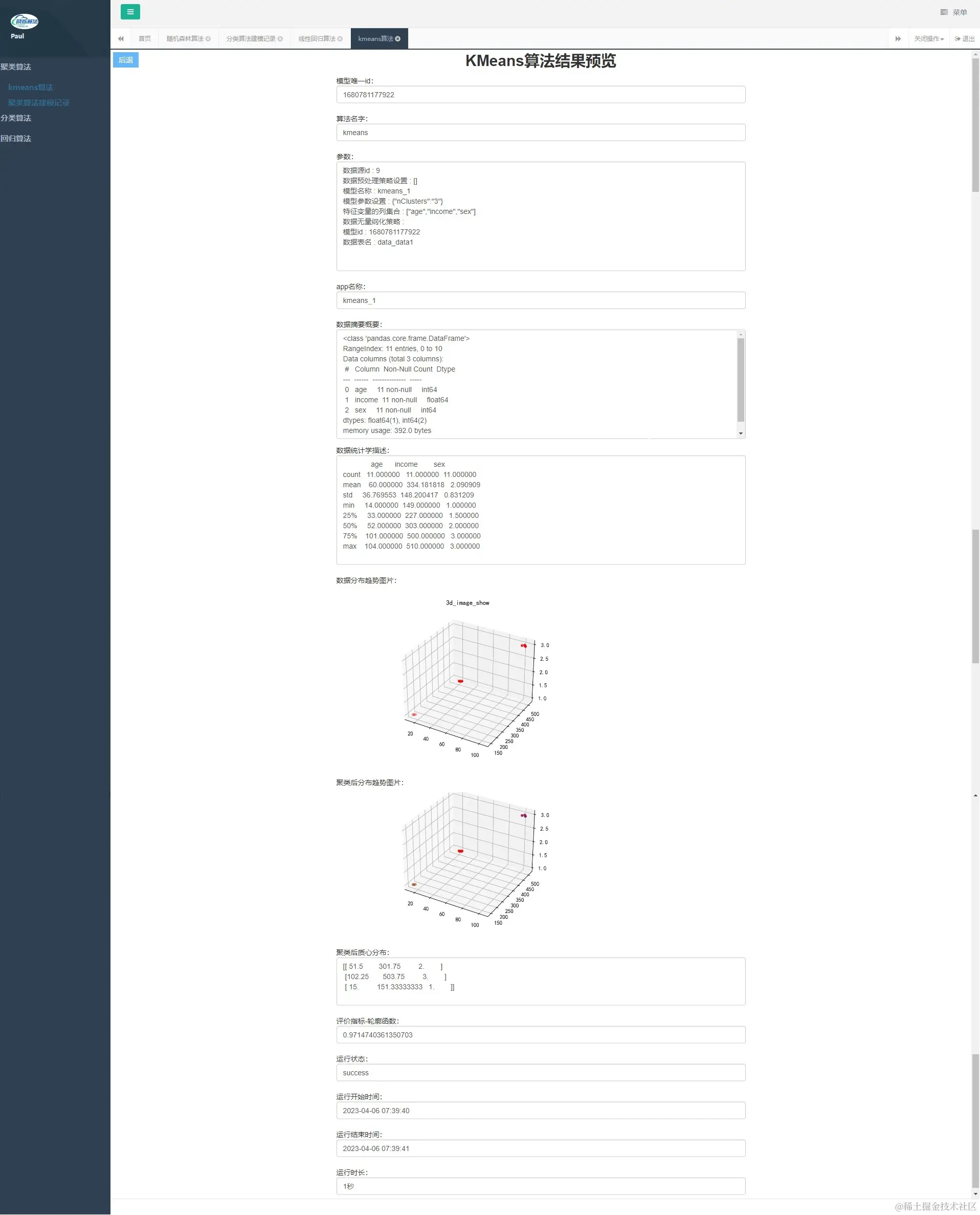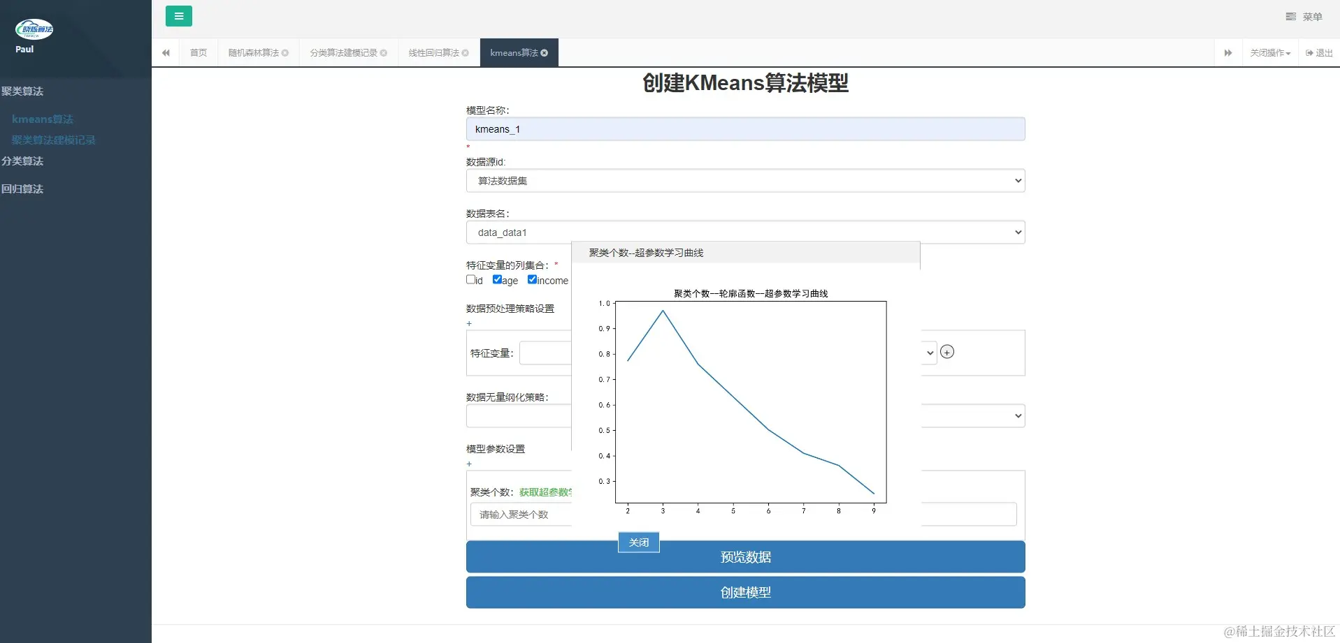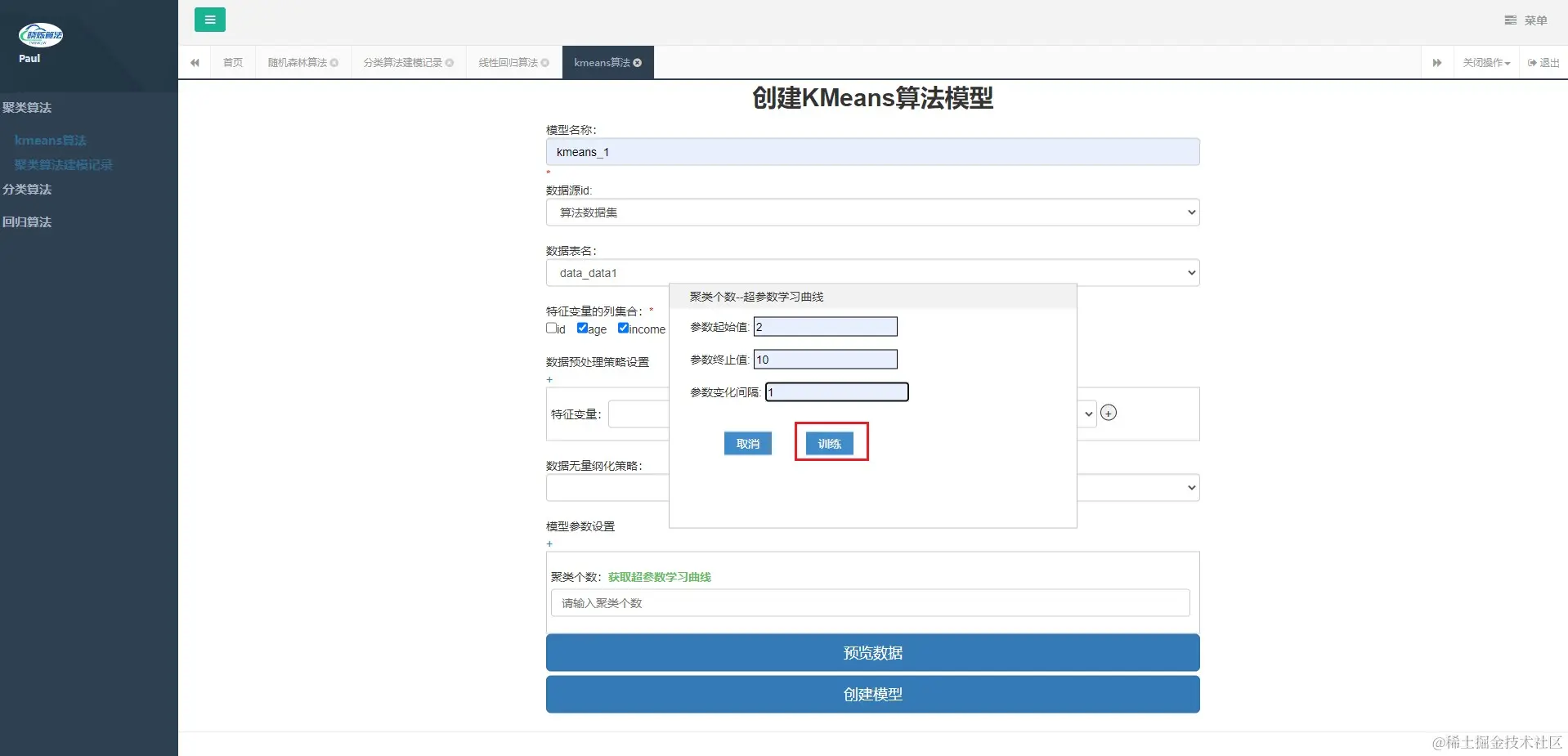 kmeans算法建模 twinkle_yan 2023-04-08 85 阅读1分钟 kmeans算法建模 预览数据 数据建模 超参数学习(参数训练) 联系方式 QQ群: 653385927(备注来源:晓烁算法)建表sql文件和建模数据都在群里 项目地址 web端 twinkle_algo_plat_web 算法端 twinkle_algo_plat
