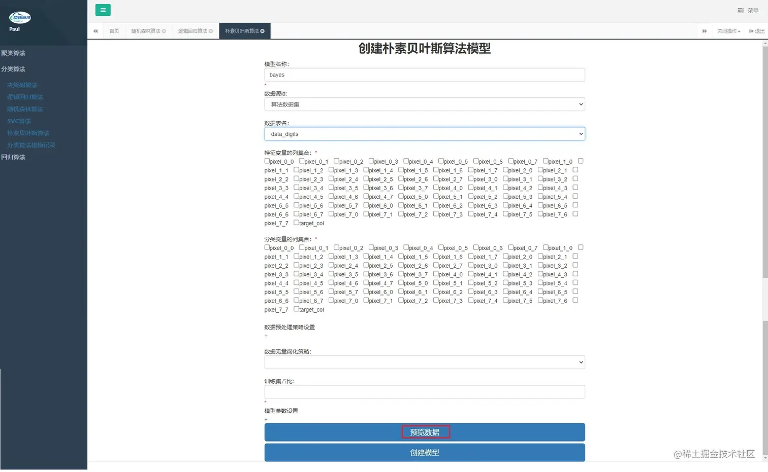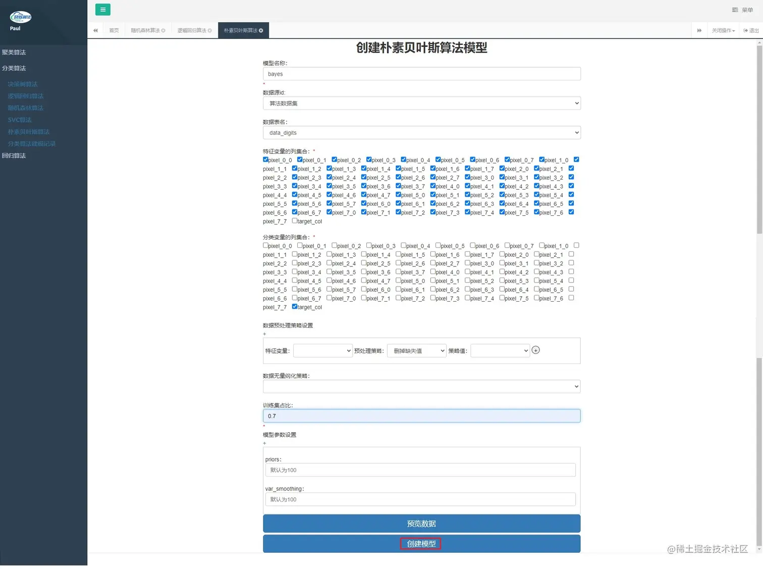 朴素贝叶斯算法建模 twinkle_yan 2023-04-08 179 阅读1分钟 朴素贝叶斯算法建模 预览数据 数据建模 联系方式 QQ群: 653385927(备注来源:晓烁算法)建表sql文件和建模数据都在群里 项目地址 web端 twinkle_algo_plat_web 算法端 twinkle_algo_plat