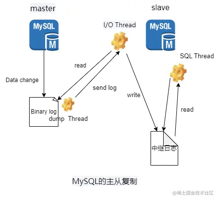 5、salve 从服务器将启动 SQL Thread 从中继日志中读取二进制日志,在本地重放,使得其数据和主服务器保持一致;