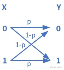 信道模型如下所示。采用汉明失真,请写出失真矩阵。