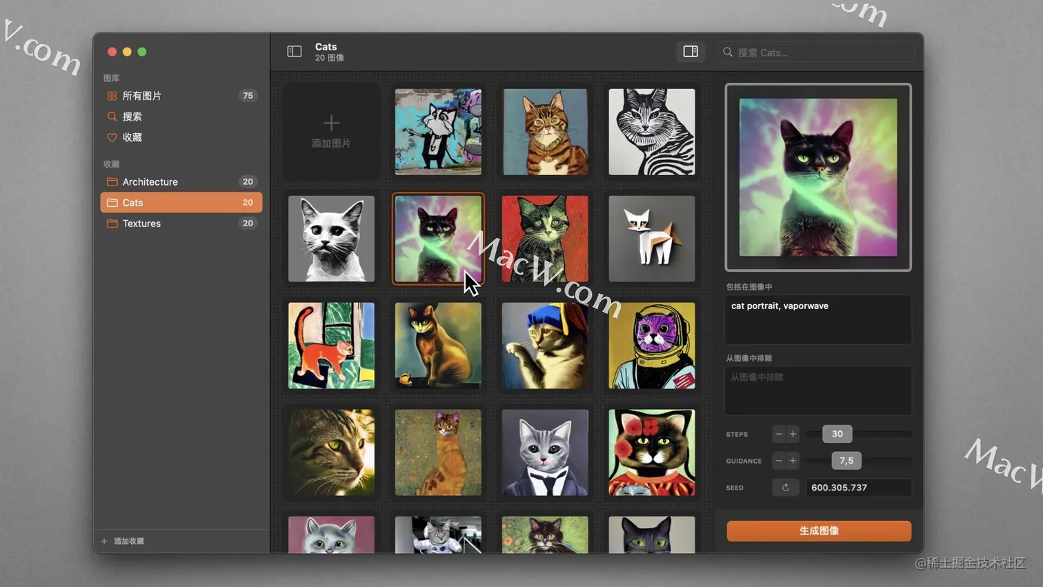 抖音超火的文本生成图像的软件,Mac也有同款。AI Photo把文字变成图片!AI Photo 是一款用户友好的文本到图像生成器应用程序,可根据您的图像描述离线创建照片和艺术品。美中不足的是这款AI Photo Mac图像智能生成工具只支持英文文本。