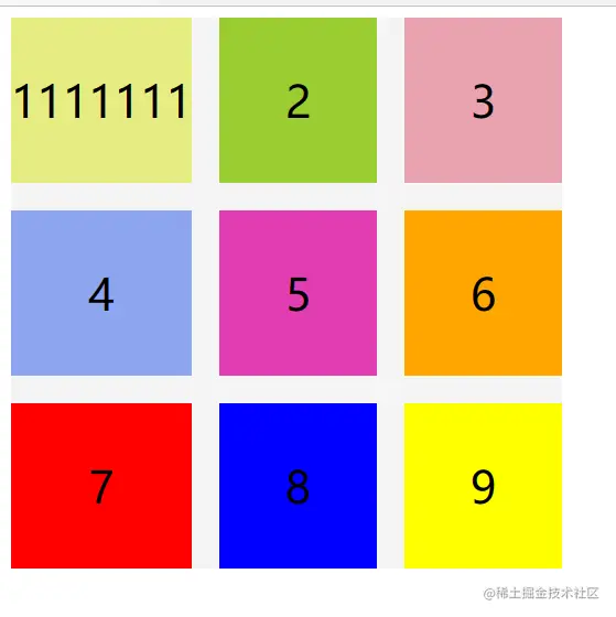 在声明了一个 grid 容器之后,我们会发现,项目全部具备了块级元素的特征,默认一行一行显示;我们把项目在容器中的这种现象 叫做 排列方式, 默认是先行后列。