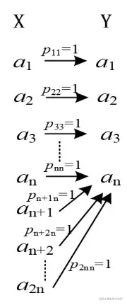p(aj∣ai)=pij=1( 或 0),H(Y∣X)=0I(X,Y)=H(Y)−H(Y∣X)=H(Y)