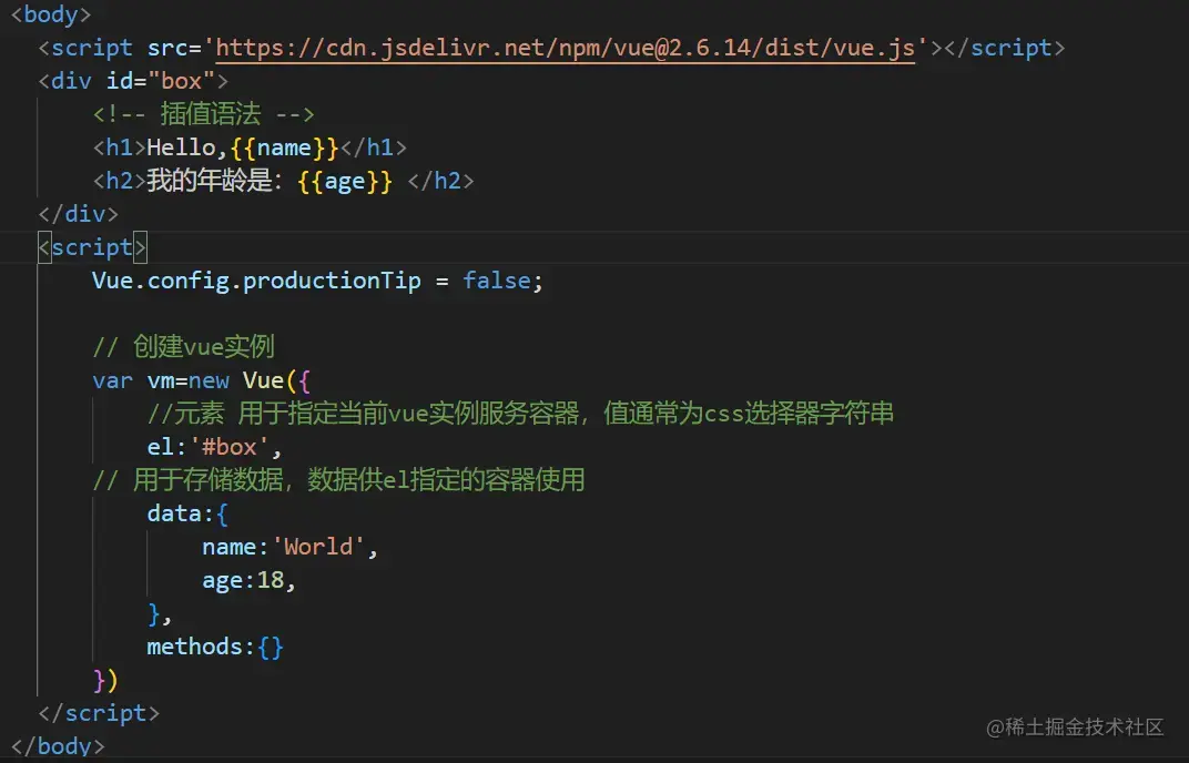 想要Vue正常工作,须创建一个Vue实例,且要传入一个配置对象