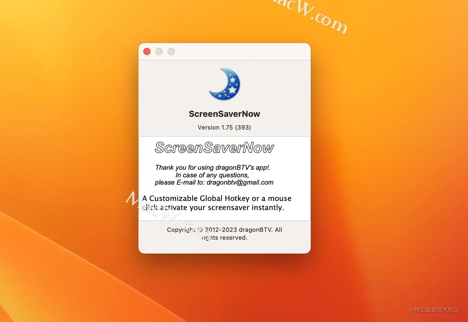 ScreenSaverNow是MacOS系统上一款简单实用的菜单栏防休眠工具,可以自定义全局的热键或鼠标单击立即激活您的屏幕保护程序。当您离开Mac电脑时仍需要保持工作状态时,ScreenSaverNow可以将屏幕保护程序与密码一起使用保护您的信息不受侵害。