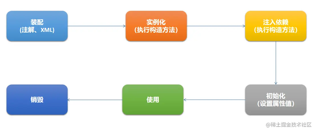 - 执行 Bean 的初始化操作。Spring 提供了多种方式来进行 Bean 的初始化,包括 InitializingBean 接口、@PostConstruct 注解、配置文件中的 init-method 等。