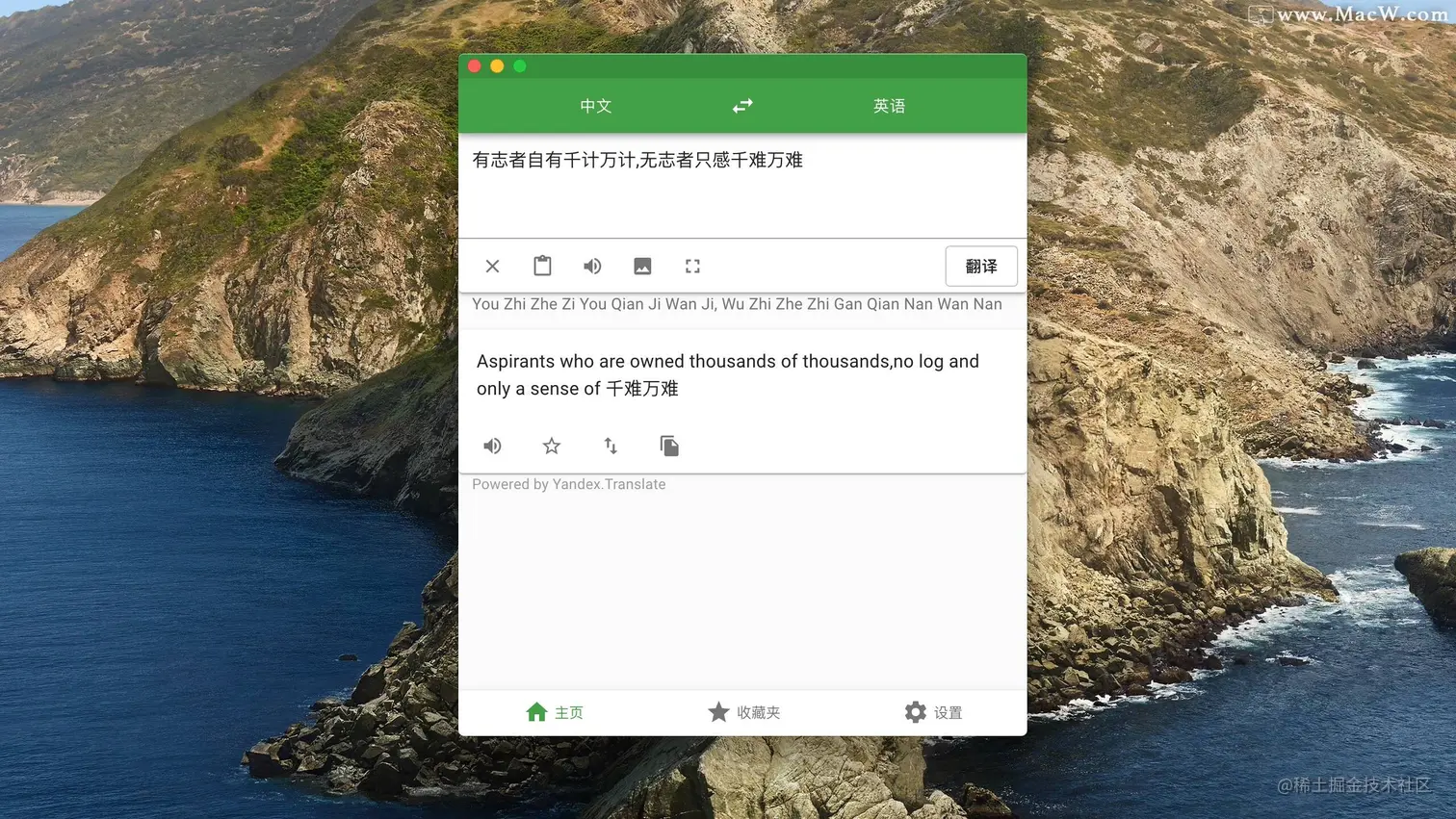 Translatium mac版是Macos上一款强大的翻译软件,支持150多种语言和方言,支持语言输入翻译,文本翻译,并且支持相机翻译语言,Translatium 还包含词典功能,可以自定义主特和颜色。