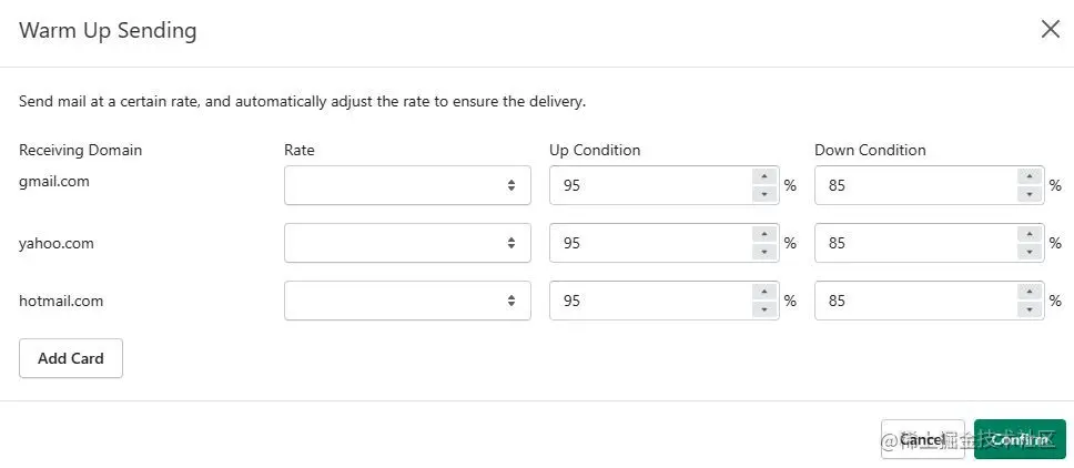 如果你希望提高对gmail、yahoo这类邮箱的送达率,减少因邮箱返回over quota的失败,建议开启 Warm Up Sending 。在你和邮箱服务商建立良好的信誉关系之前,即便是优质订阅内容,在短时间内大量发送也会被拒信,或者被标记为垃圾邮件发送者。因此需要控制好发送速率并逐渐提升发送量,避免出现此类问题。