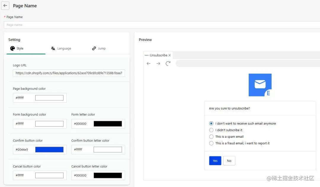 另外,您可以在Setting中对退订页面进行个性化设置,以保持品牌一致性。