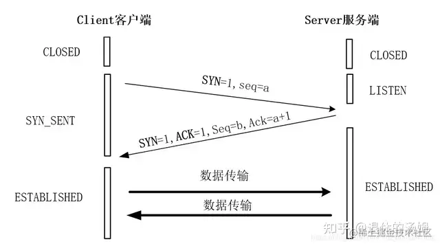 图:TCP建立的连接时三次握手示意图