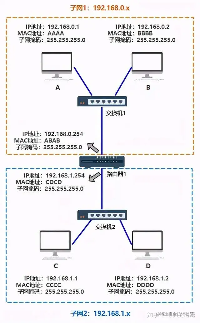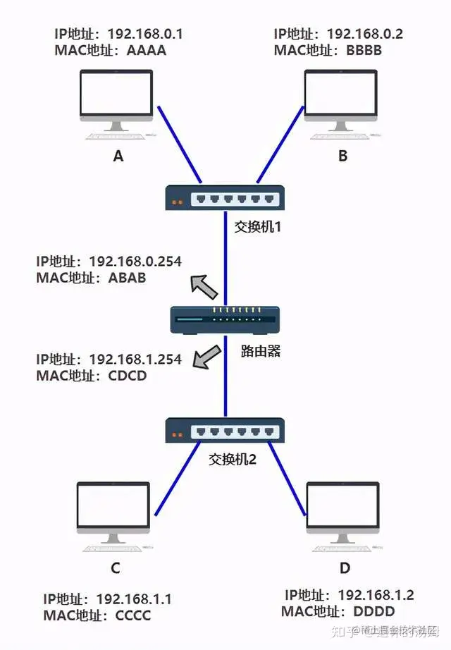 首先,你要给所有的连接到交换机的设备,都起个名字。原来你们叫 ABCD,但现在需要一个更专业的,全局唯一的名字作为标识,你把这个更高端的名字称为 MAC 地址。
