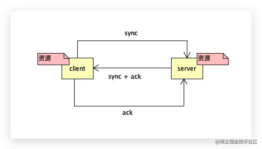 服务端回复一个sync的确认包,客户端再回复一个ack。