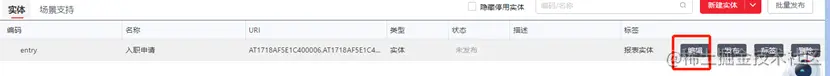 首先,对已发布的登记信息实体进行修改,增加业务流引用接口以及岗位字段并发布,以便后续设计由登记信息下推至入职申请的业务流功能。此处需要注意的是在实体已经发布后我们需要尽可能避免对已发布实体进行删除字段或者取消接口的修改,这种修改易引起后续页面以及流程设计时的报错提示。