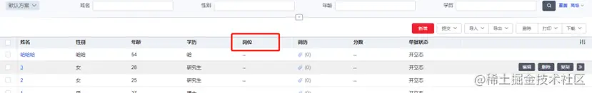 同理,在详情页的设计器中也可以通过拖拽字段的方式来完成岗位字段的配置。