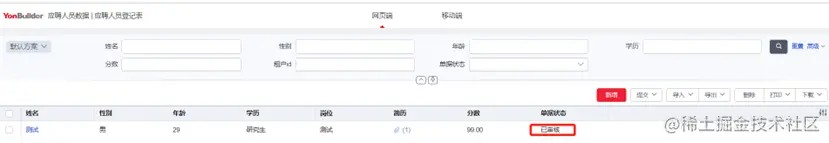 此时刷新入职申请单页面,可以看到已经自动生成了一条入职申请信息,综上完成了在应聘人员数据审核通过后自动生成入职申请的功能。