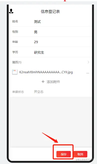 首先,在配置的移动端信息登记表中提交一条测试信息。