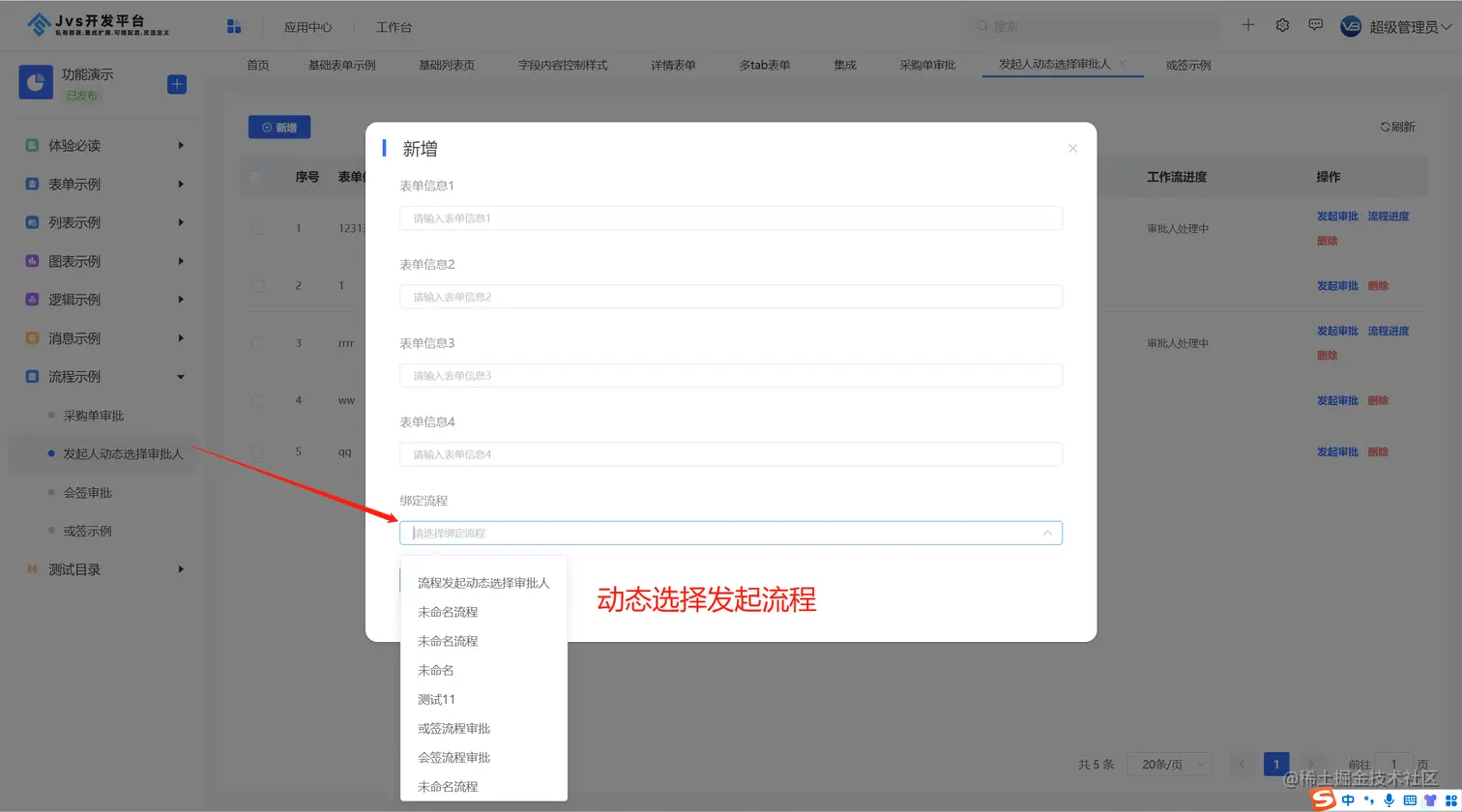 1、动态选择发起流程:
