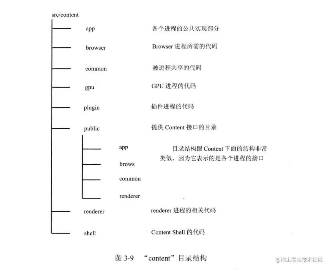 下面重点描述content目录,如图3-9。结构比较容易理解,基本对应了多进程模型中的各种进程类型。