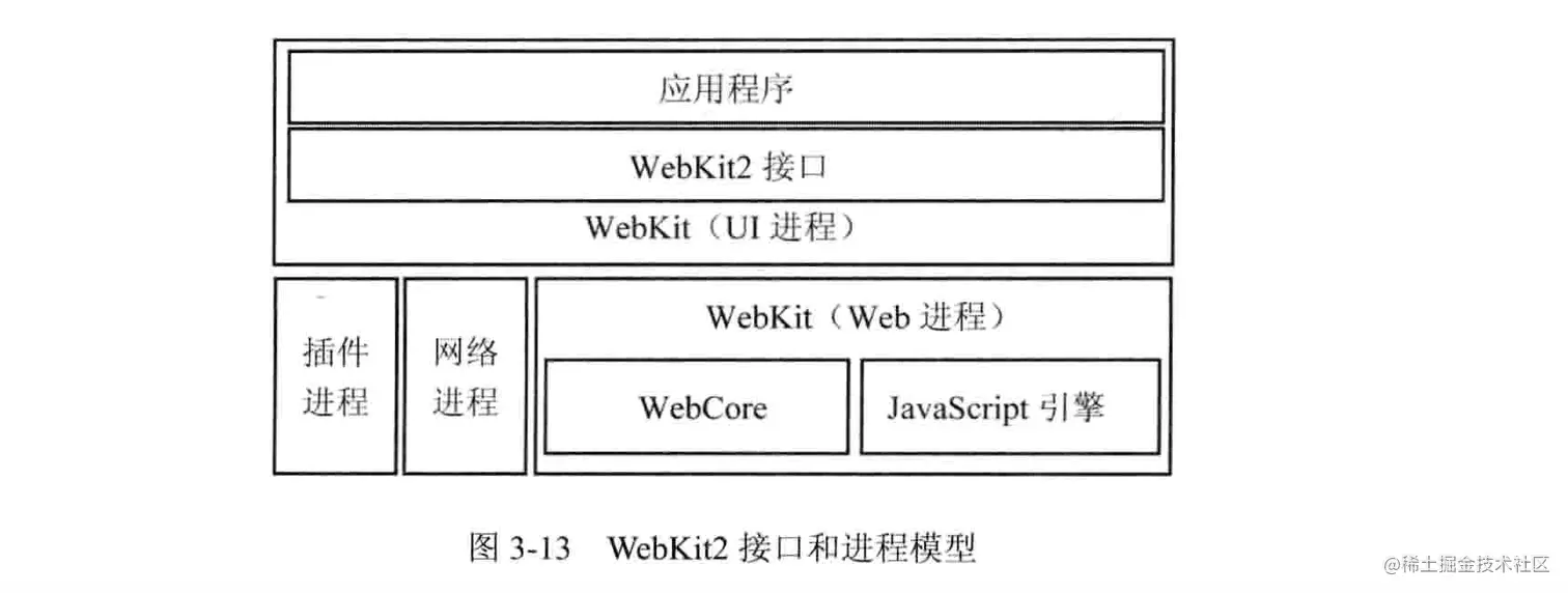 如图3-13,是webkit2 接口和进程模型。自下而上介绍。