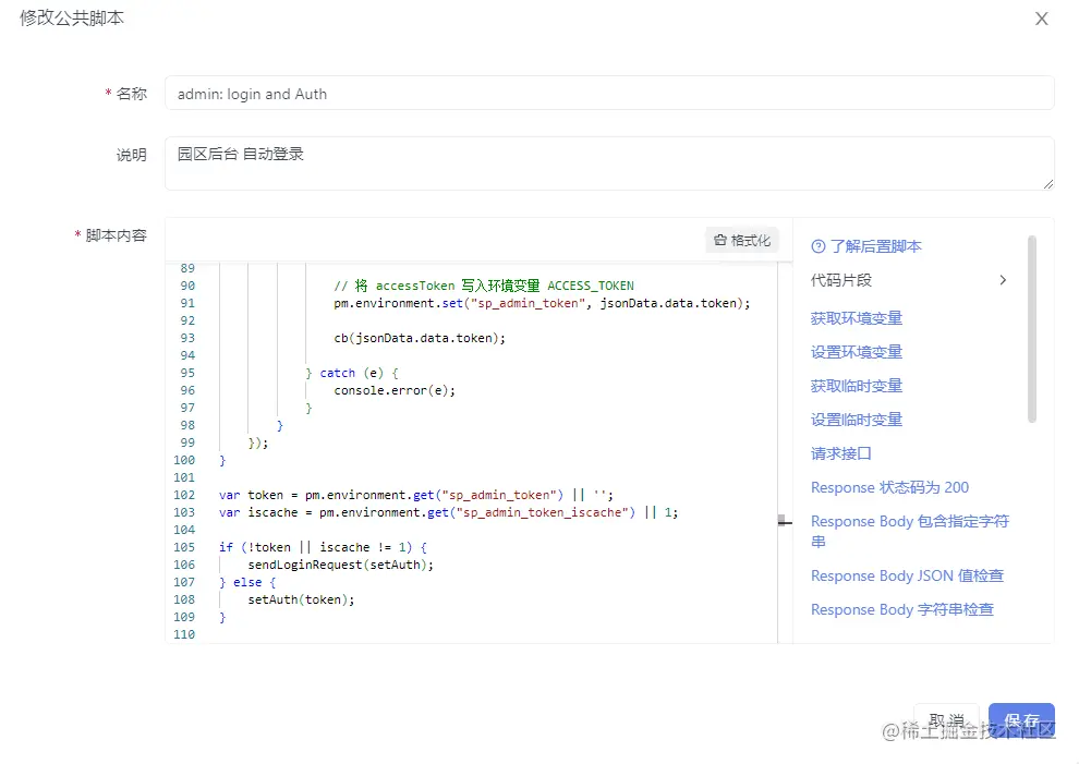 在这个例子中我们是将 用于后台登录的 用户名 和 密码 提前配置到了 环境变量中,然后利用脚本 pm.sendRequest 请求登录接口获取 token,并设置 请求头,这样就实现了接口的自动登录。