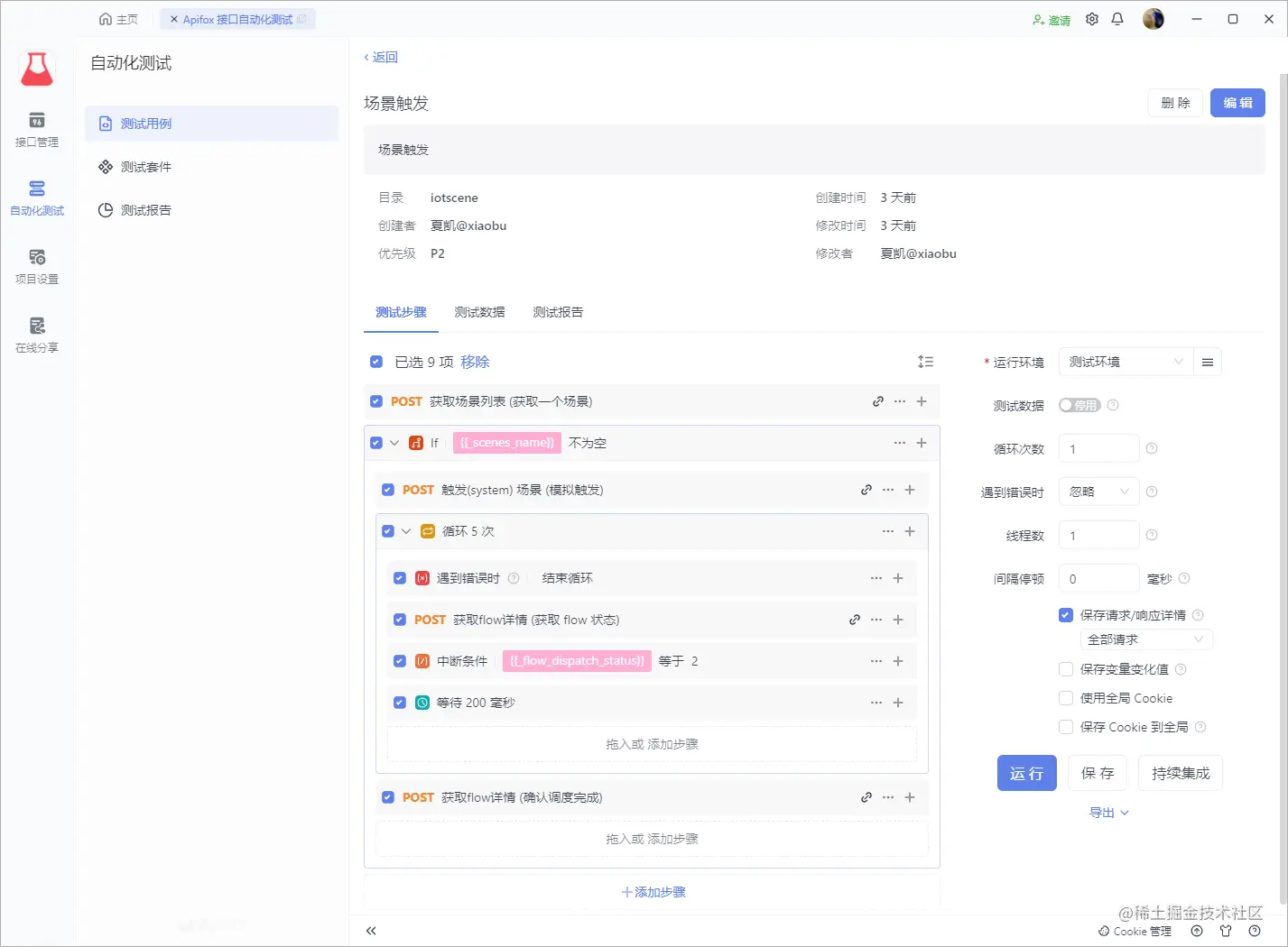 在掌握了 Apifox 的强大脚本能力后,你几乎能够解决任何鉴权、加签等问题了,接下来我们开始搭建完整的测试流程,以便真实完整的模拟正常使用时的业务测试场景。