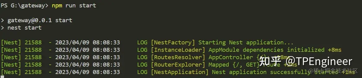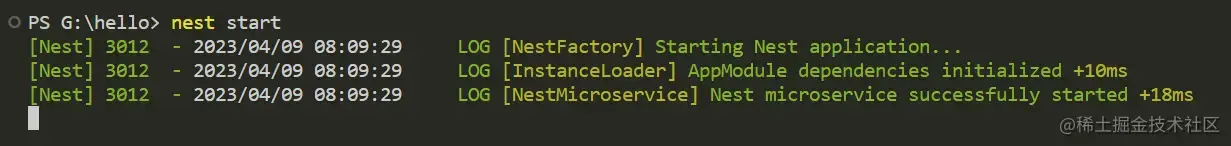 也可以直接运行 nest start 命令启动微服务。