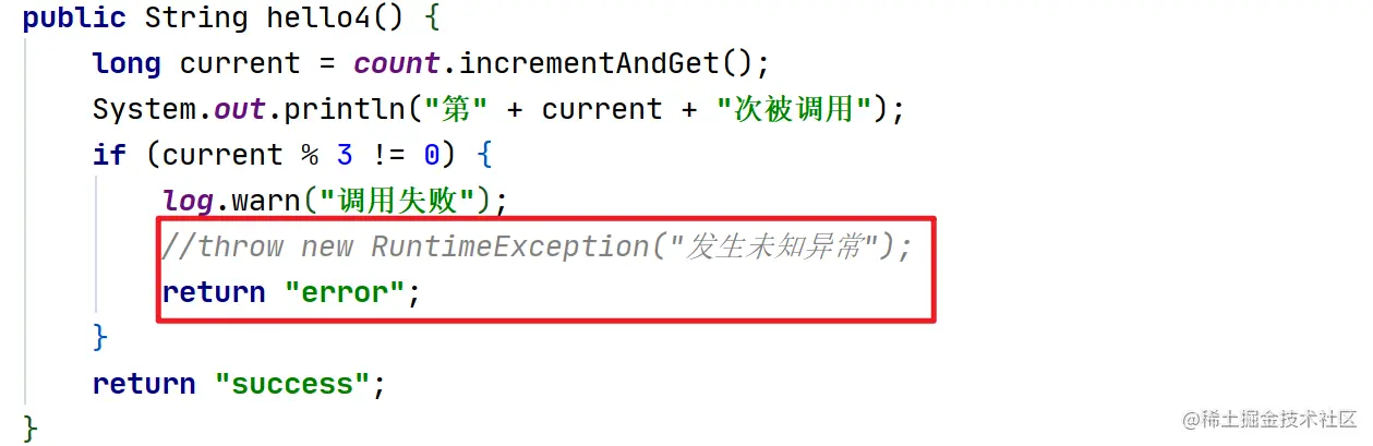本文会用如下方法来模拟远程调用的服务,其中每调用3次才会成功一次: