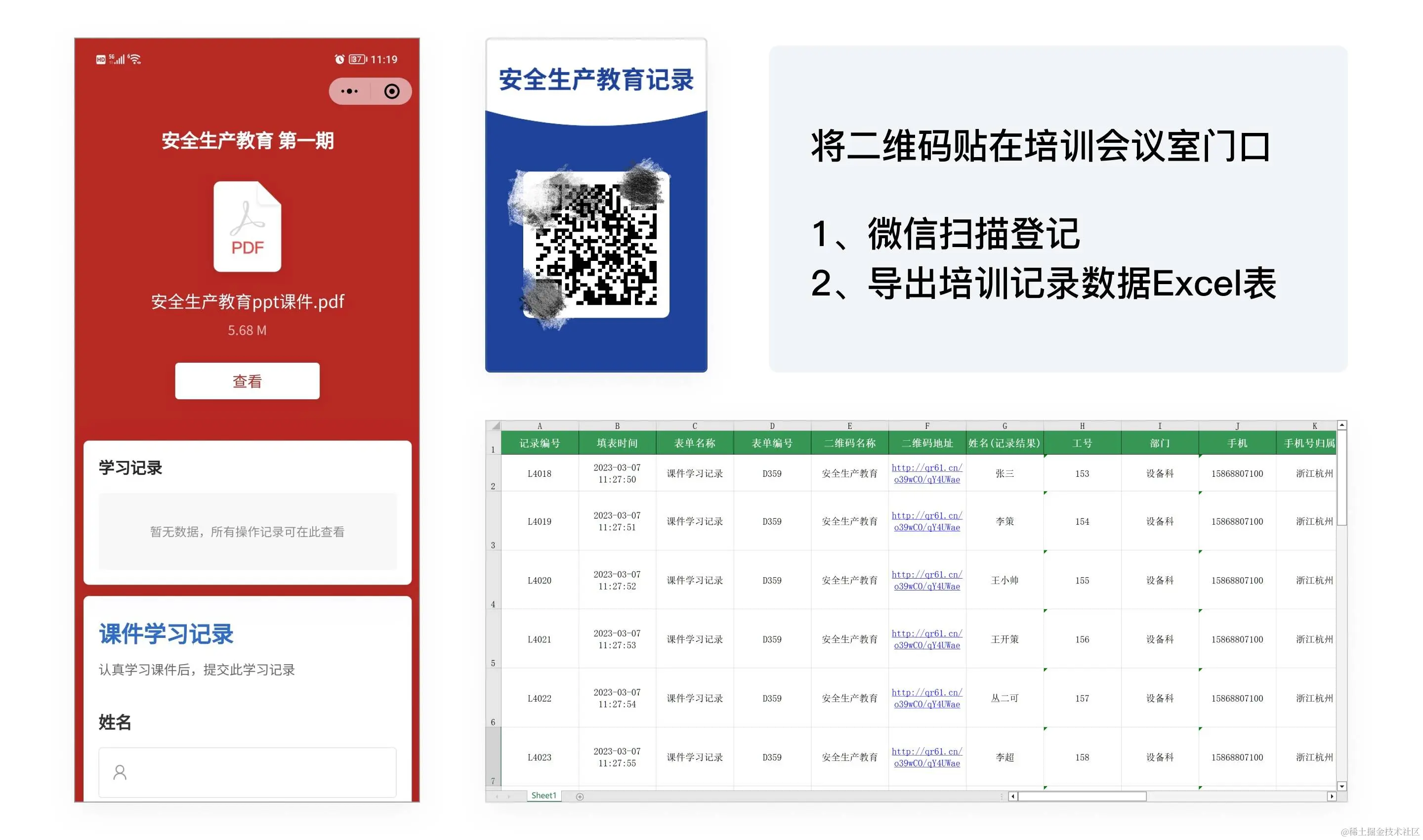 管理者可以扫码查看参与培训的人数,也可以在后台导出培训人员数据Excel表,方便存档。
