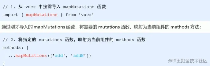 触发mutations同样有第二种方式,就是按需索取,和按需索取store中变量方法非常类似,把需要用到的方法映射过来即可。
