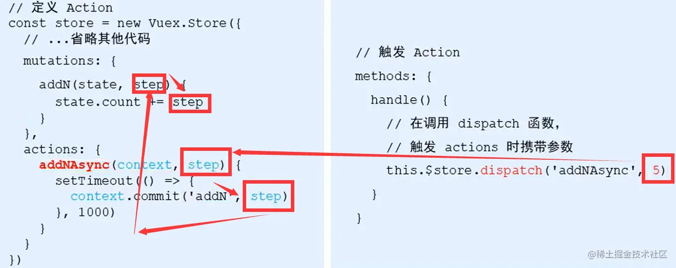 同样,触发action时也可以传递参数: