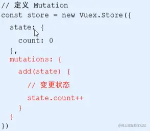 (Mutations里面的方法的第一个参数永远是state,可以直接从里面更改数据)