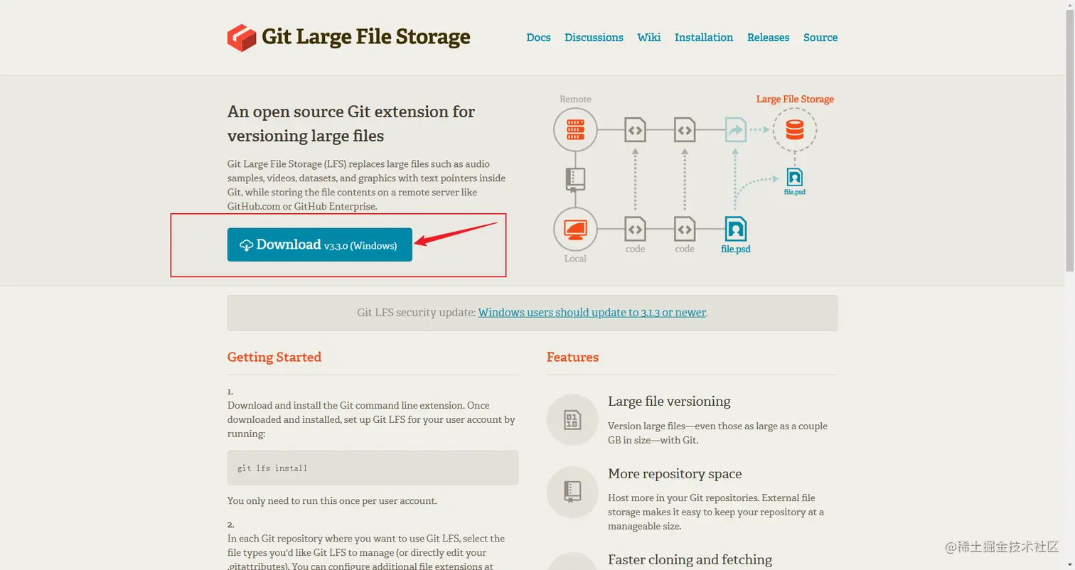 首先需要到官方网站写下载改git-lfs