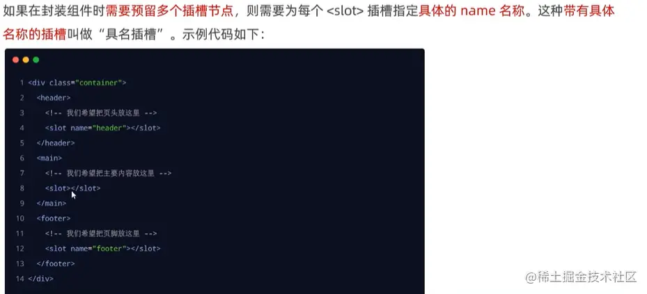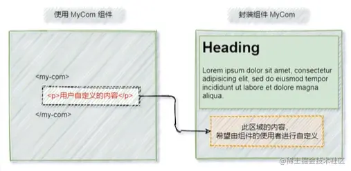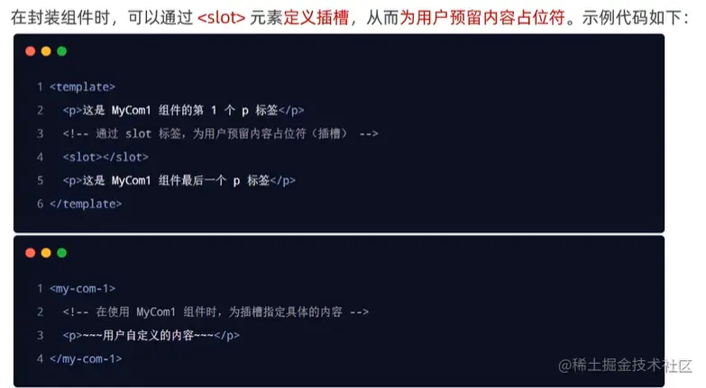 可以把插槽认为是组件封装期间,为用户预留的内容的占位符。