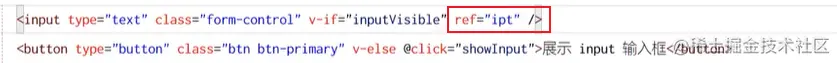 此时初始时,按钮显示,文本框隐藏;点击按钮可以隐藏按钮,显示文本框,但此时文本框并没有自动获得焦点,所以我们还需要使用ref引用自带的focus组件来使得文本框获得焦点。