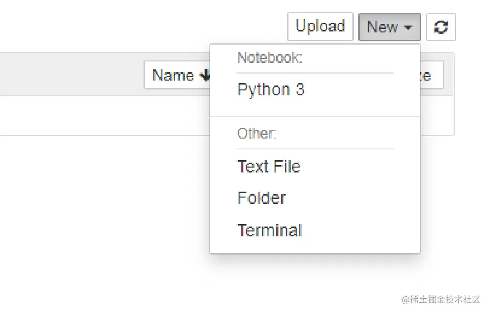 要打开一个新的 Jupyter 笔记本,点击页面右侧的「New」选项。