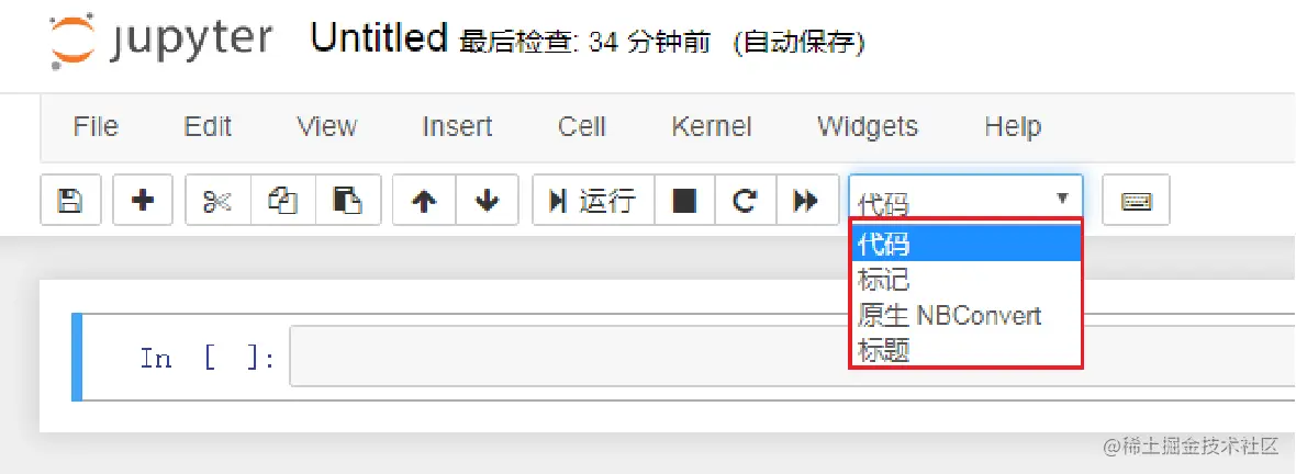 - Markdown --> 标记(在运行一段代码后添加你的结论、添加注释等。)