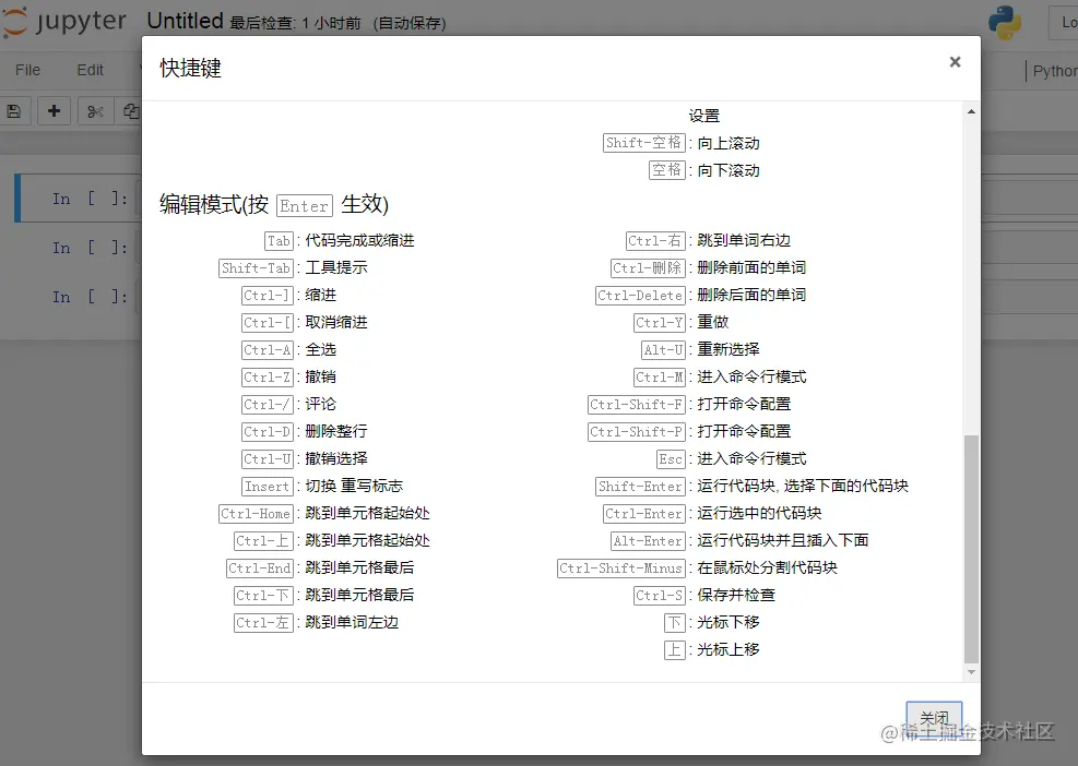 实际上,大家不需要去背这些快捷键。可以进入命令模式, 摁住H就可以看到快捷键了。